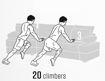 Ora spostatevi lateralmente secondo questa sequenza: gamba destra, braccio destro, braccio sinistro, gamba sinistra. Una volta raggiunto il lato opposto del divano, ritornate indietro.