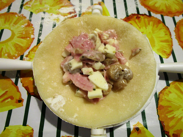 La sfoglia si stende molto facilmente. Non stendetela troppo sottile sia perchè i sofficini farciti si romperebbero, sia perchè l’involucro ha un buon sapore che si armonizza perfettamente con i vari ripieni. Naturalmente potrete usare le farciture che volete e anche dimezzare le dosi ma io sono sempre convinta che, una volta che si utilizzano varie cose per una preparazione, tanto vale farle abbondanti e congelarle.