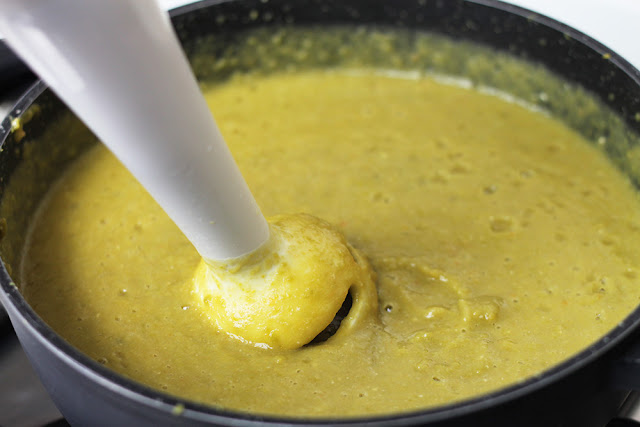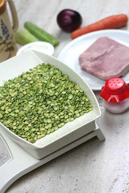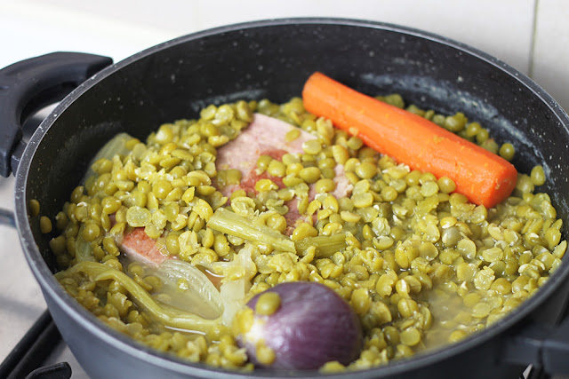 Los guisantes secos por lo general no requieren de remojo: se enjuagan y se ponen en la olla de inmediato, por èsto el plato es bastante fácil de preparar.