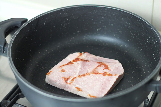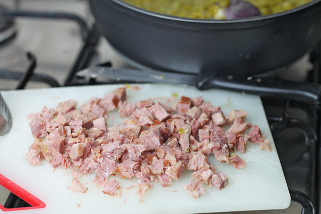 Hemos acompañado la sopa de guisantes con jamón cocido, pero si consiguèn jamòn ahumado, se los aconsejamos. Lamentablemente en nuestro país, no es fácil de encontrar en cualquier lugar. Nosotras no utilizamos el tocino, porque habría sido demasiado fuerte como sabor.
