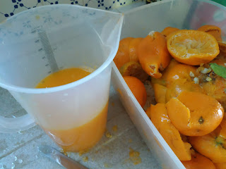 Ho spremuto i mandarini e alcuni li ho privati degli spicchi per lasciare la scorza come simpatico contenitore.