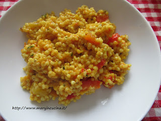 350 gr sorgo decorticato, 2 peperoni (1 giallo ed 1 rosso), curcuma, olio extravergine d’oliva, sale integrale, prezzemolo, pepe.