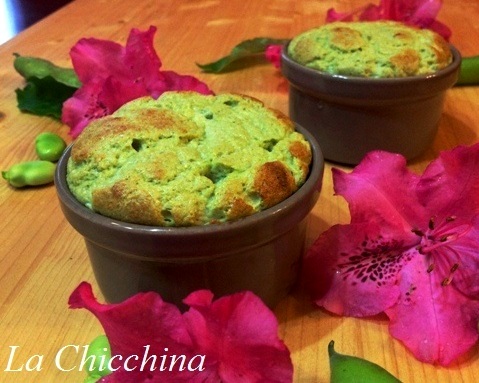 Lo seguo (ricambiata) in Twitter e sono stata felice quando mi ha proposto di realizzare una sua ricetta inedita, pensata per l’occasione: dei soufflè monoporzione con fave e pecorino, in cui è facile intuire la bravura di chi l’ha pensata.