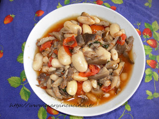 200 gr fagioli (bianchi e fagioli di spagna), 500 gr funghi pleurotus, 6 pomodorini, 1 spicchio d’aglio, prezzemolo, olio extravergine d’oliva, sale integrale, peperoncino.
