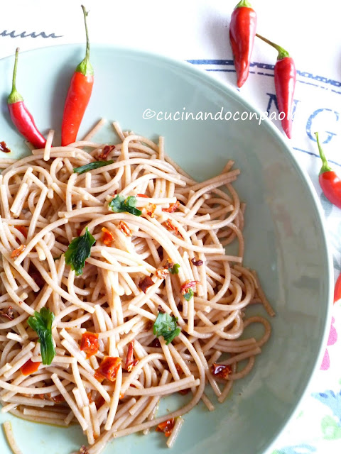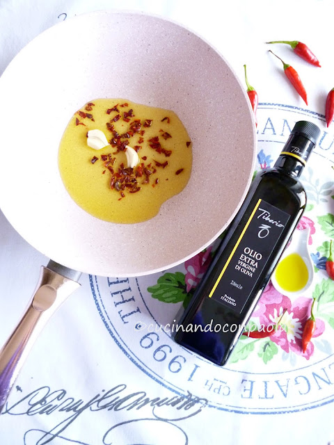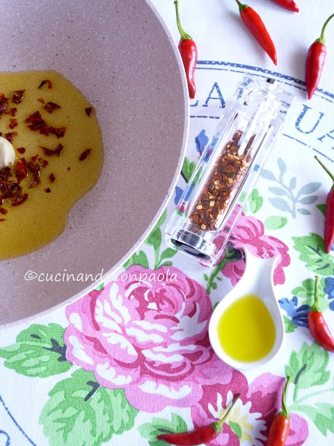 Appena l’aglio inizia a dorare, unite il peperoncino, il peperone franto e