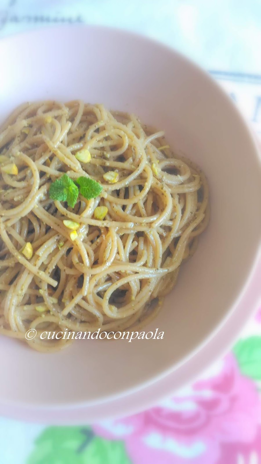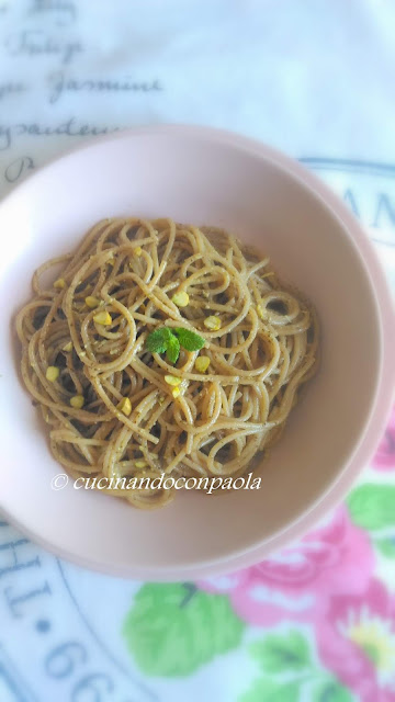 mentre gli altri ingredienti sono stati sostituiti: la menta per il basilico, i pistacchi per i pinoli.