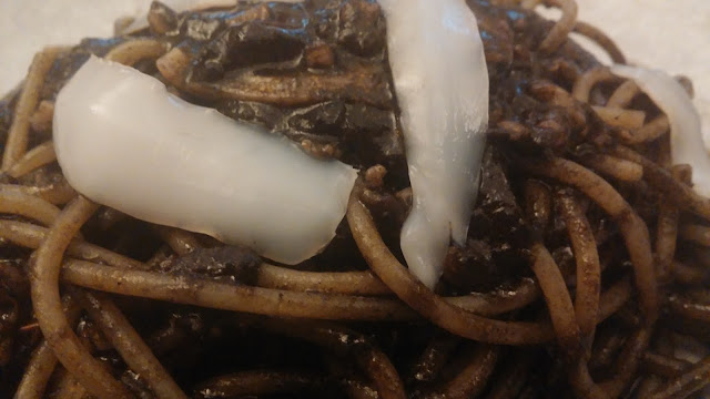 Pulite le seppie eliminando ossi, becchi, occhi, interiora, ma conservando le vesciche dell’inchiostro; spellatele, sciacquatele, asciugatele. Tagliate le teste con i tentacoli a pezzetti e le sacche a strisce sottili.
