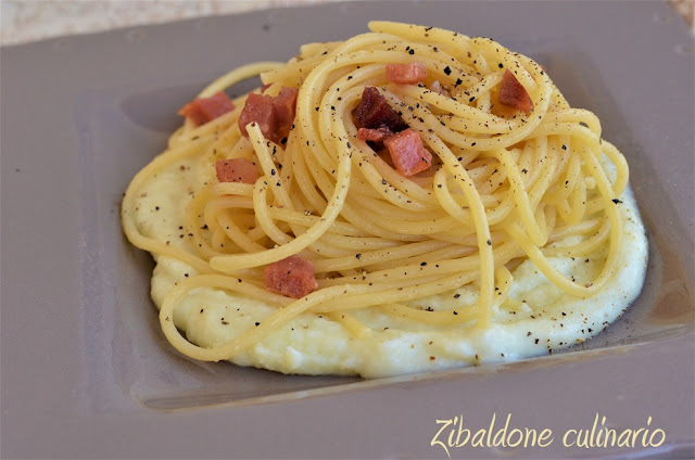 Servire gli spaghetti sulla crema di topinambur dopo aver spolverato con una macinata di pepe nero.