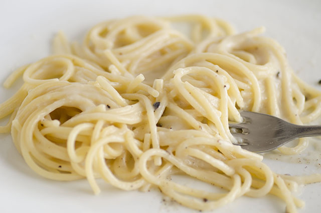 È un piatto difficile anche se ci vogliono solo 3 ingredienti: spaghetti, pecorino e pepe, ma se non si usa il pecorino adatto, gli spaghetti non si amalgamo bene con il formaggio.