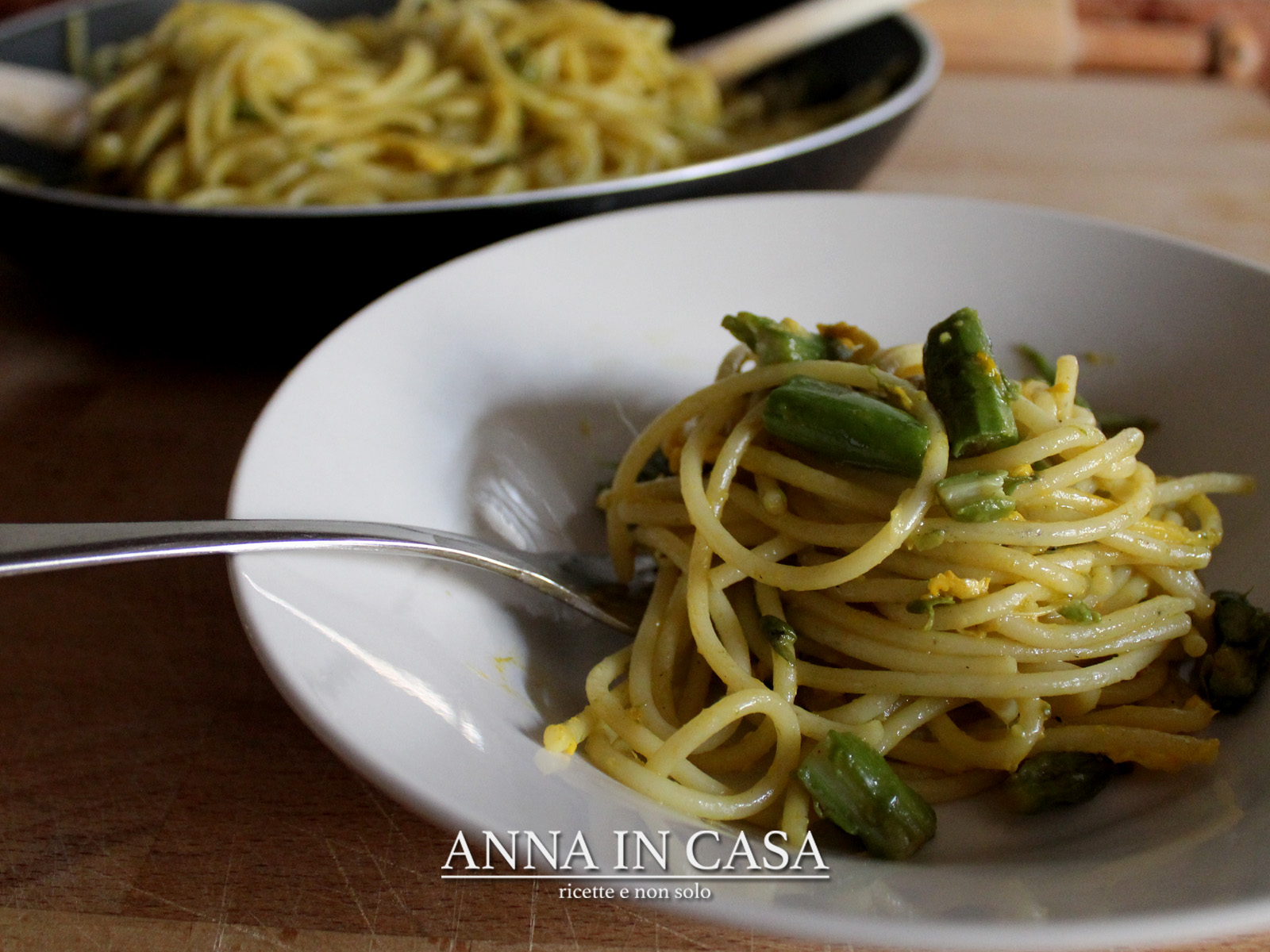 Emulsionare di nuovo le uova, aggiungere agli spaghetti e mescolare rapidamente.