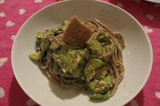 Affettare le zucchine a rondelle e cuocerle in padella con un filo d’olio ed un po’ di cipolla affettata finemente. Aggiungere un pizzico di sale a fine cottura e 2 – 3 cucchiaiate di formaggio di pistacchi, lasciar sciogliere un po’ il formaggio e spegnere la fiamma. Nel frattempo lessare gli spaghetti e ripassarli in padella con le zucchine per far amalgamare bene tutti gli ingredienti.