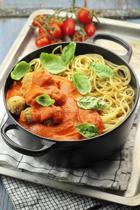 E niente, cosa posso dire di questi spaghetti con le polpette vegan? Finchè li fotografavo mi sono passati davanti agli occhi Lilli e il Vagabondo mi sono ricordata quanti anni erano passati da quando l’avevo visto al cinema, mancava poco che mi mettessi a piangere :) quando si dice che un piatto riesce a commuovere! Bene, tornando agli spaghetti con le polpette vegan, io ho preparato le polpettine con i ceci, ovviamente si possono preparare anche con le lenticchie o con i fagioli. Il sugo era buonissimo, con i pomodori freschi e tanto basilico. Basta, non aggiungo altro. Le polpettine sono più veloci se avete i ceci già lessati ovviamente, per dieci polpettine ve ne bastano 150 g, se avete un avanzo di legumi bolliti vi risparmiate di cuocerli :)