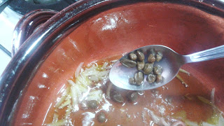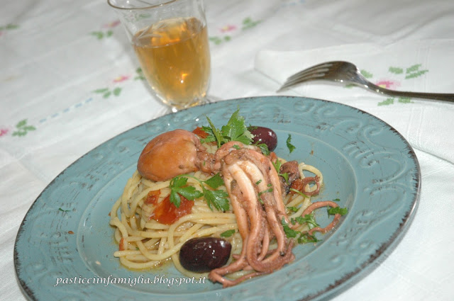 Quando cucino questo piatto, l’odore del pesce e della cottura in coccio trasfonde per tutta la casa. Aggiungendo qualche patata in cottura insieme al polpo si trasforma questo sugo in un piatto unico da servire accompagnato da crostini di pane o per condire gli spaghetti.. Gli aromi delle erbe si sposano bene col polpo assicurando un ulteriore profumazione e degustazione al piatto. Nelle foto che seguono ho proposto entrambe le versioni con e senza pasta.