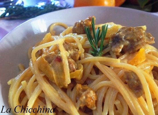 Tempo fa ho mangiato un piatto simile in una trattoria, un posto senza pretese ma pulito, con una cucina che sa di casa e di famiglia… Mi è piaciuto tanto e quindi ho provato a replicarlo a memoria: devo dire però che la mia è risultata ancora più buona (ih, ih, ih!!!).