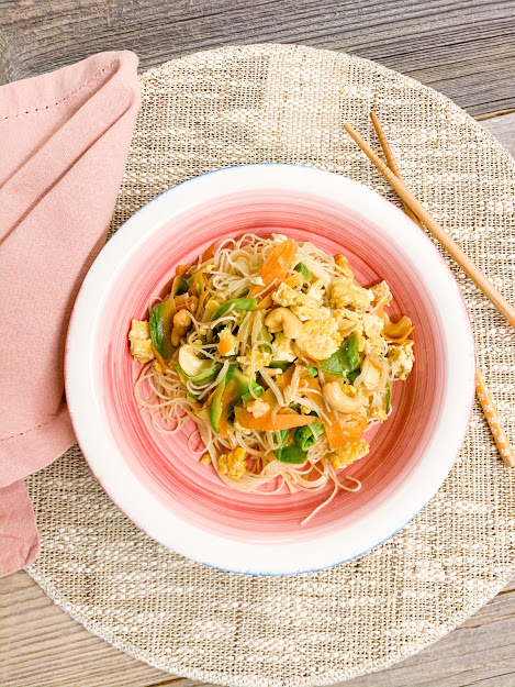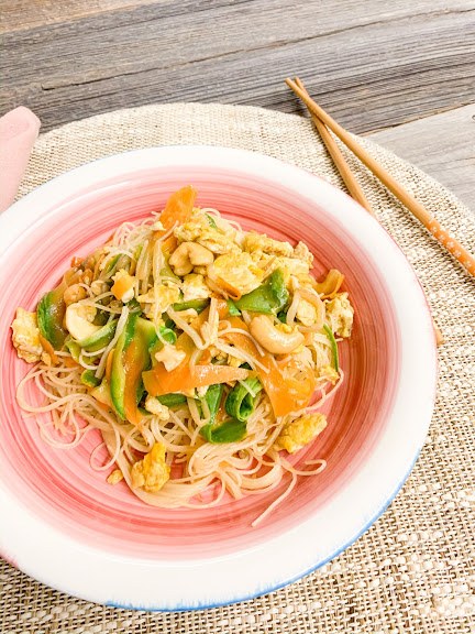 Non so se li avete mai provati, ma gli spaghetti di riso sono un’ottima alternativa alla pasta! Saziano, sono senza glutine e hanno una grande resa, ovvero rispetto agli stessi grammi di pasta sono decisamente più voluminosi (vi sembrerà di mangiare un enorme piatto di pasta con soli 75 g per persona). Ma veniamo alla ricetta, l’ispirazione è quella asiatica… verdure, anacardi, germogli e salsa di soia, un mix si sapori di sapori diversi dal solito che esalteranno le vostre papille gustative! Gli spaghetti di riso apportano una buona quantità di vitamine B e D, calcio, fosforo e ferro, inoltre risultano essere molto digeribili.
