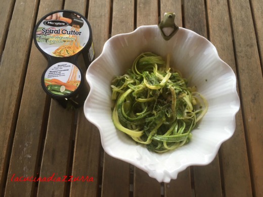 Mi sembrava sempre poco, così avendo un esubero di zucchine trombetta provai questo attrezzino fighissimo preso da Mokki e del quale non posso più fare a meno!!!Basterà mettere nella fessura più piccola la zucchina, girare come se appuntassi una matita e vi usciranno come per magia… gli spaghetti di zucchine!!!