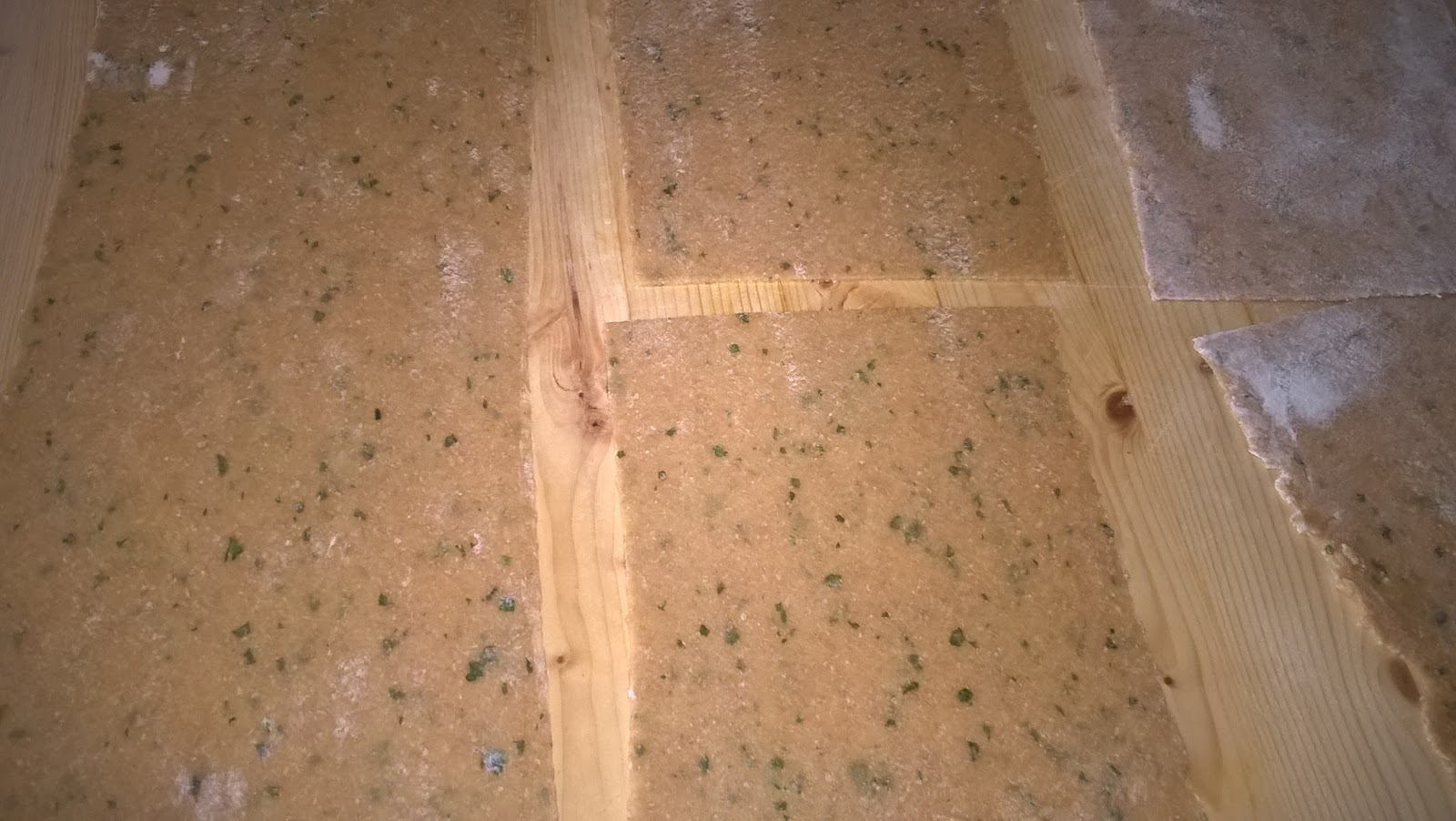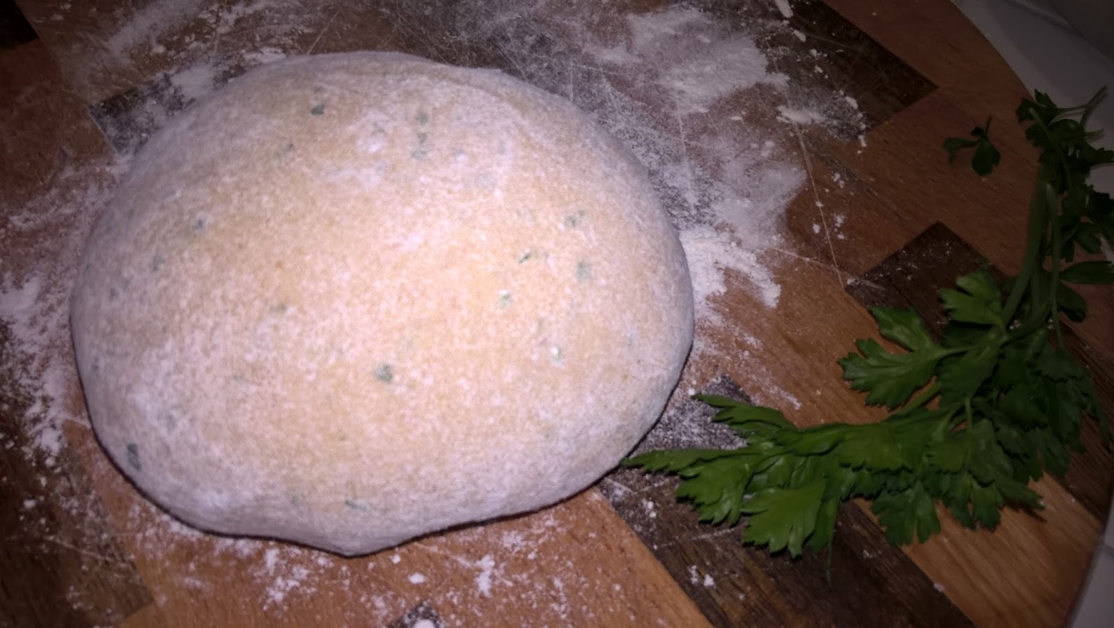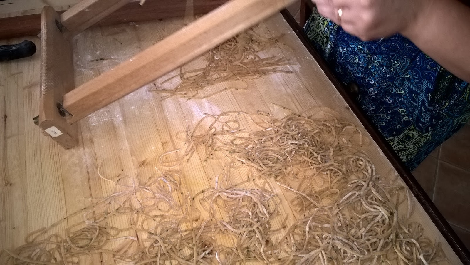 Per 4 persone: 400 g di semola integrale di grano Russello, 4 uova, foglie di prezzemolo tritate finemente. Impastare il tutto (se l’impasto risultasse troppo duro aggiungete un po’ d’acqua). Fate riposare, quindi tirate la pasta in sfoglie non troppo sottili.