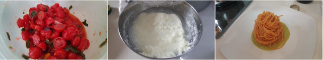 Mettiamo a cuocere la pasta in abbondante acqua salata per il tempo indicato nella confezione quindi scoliamola, aggiungiamo metà del pomodoro e mantechiamo quindi prepariamoci a comporre il piatto.