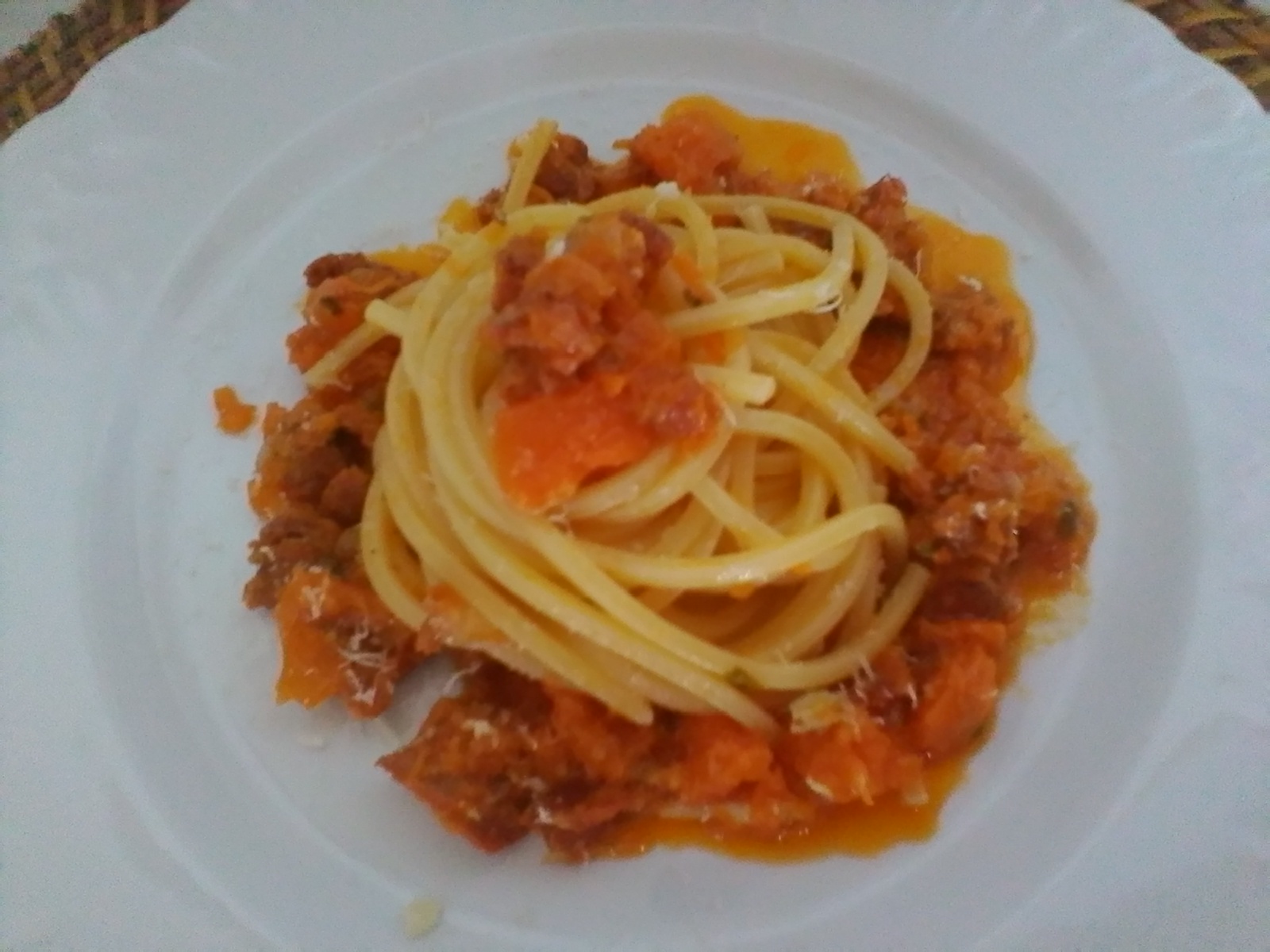 Allora, oggi ho pensato di postare la ricetta di un primo, un piatto gustoso e con pochissimi ingredienti: la pasta con zucca e salsiccia. Un piatto veloce da portare in tavola, anche in un giorno di festa, che verrà apprezzato anche dai palati più esigenti proprio per quell’unione tra il dolce della zucca e il salato della salsiccia. Provatelo e vi accorgerete che il risultato è davvero unico e insuperabile!