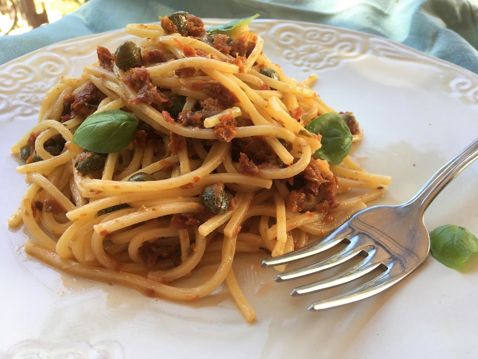 Questo è successo l’altro giorno: rientrata da millemila giri, dopo una breve occhiata al frigo in cerca di un’idea, mi è apparso un vasetto di pomodori secchi…che ci faccio??!! Ecco che cosa ci faccio: una pasta strabuona che è piaciuta proprio a tutti e che ho già replicato..