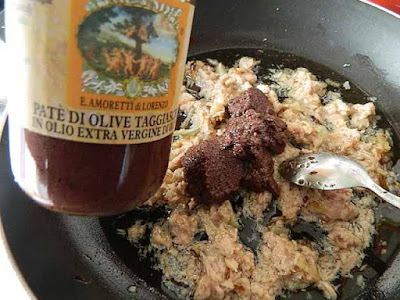 spezzettarlo e aggiungere il patè di olive e il pepe