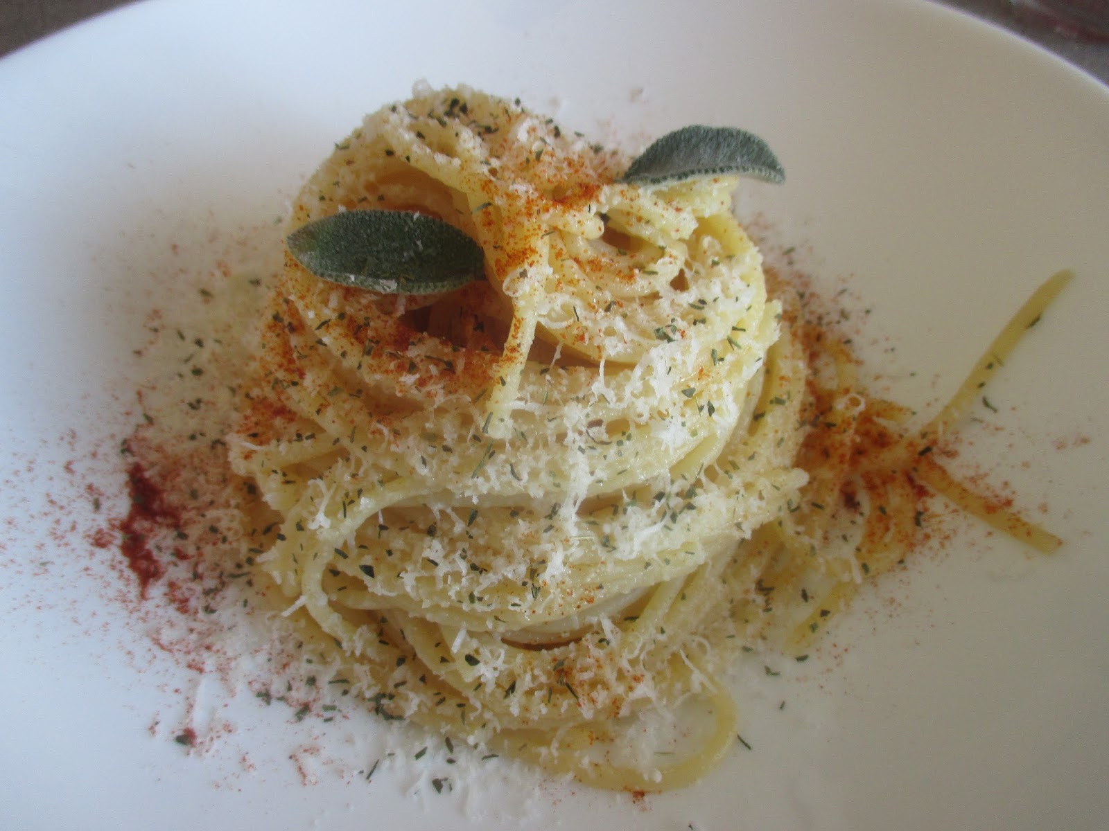 A little variation to the classic pasta “spaghetti with garlic, oil and hot pepper.” Instead of the oil I used a butter sauce slightly more elaborated and with the addition of more flavor, sage
