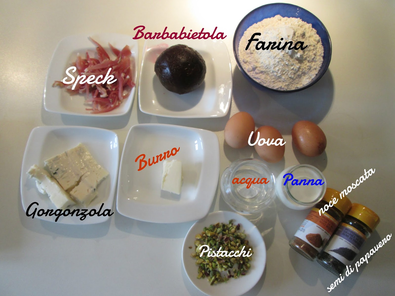 - In una ciotola rompete le uova, aggiungete la farina, la purea di barbabietola, un pochino d’acqua (consiglio di aggiungere poca acqua alla volta valutando la consistenza man mano) un pizzico di sale e un pizzico di noce moscata. Amalgamate gli ingredienti con l’aiuto di una frusta fino a quando l’impasto non risulterà ben omogeneo (dovrà essere fluido ma consistente!) Lasciate riposare il composto per una decina di minuti, giusto il tempo di preparare il condimento!