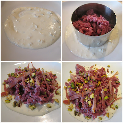 - Eliminate dalla barbabietola (acquistatela sottovuoto già lessata) la pellicina superficiale, tagliatela e cubetti grossolanamente e frullatela in un mixer fino ad ottenere un composto morbido