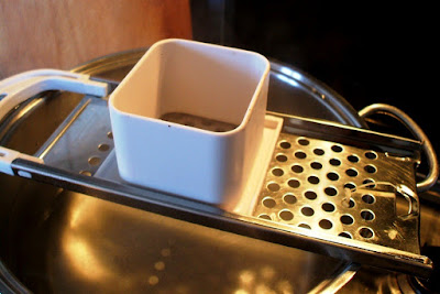 - Mettere dell’acqua in un tegame largo, salarla e appena raggiunge il bollore appoggiare sopra l’attrezzo forma-spätzle.
