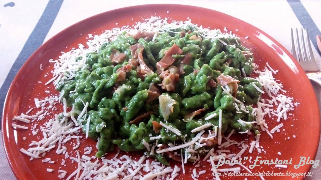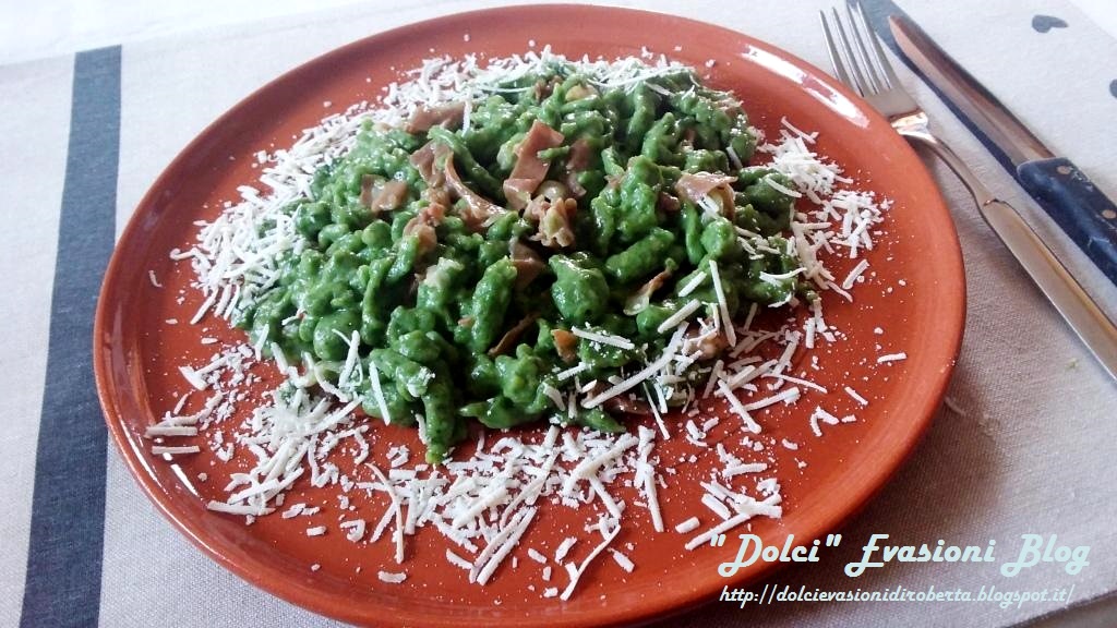 Spätzle verdi agli spinaci con speck e ricotta salata (Prima versione)