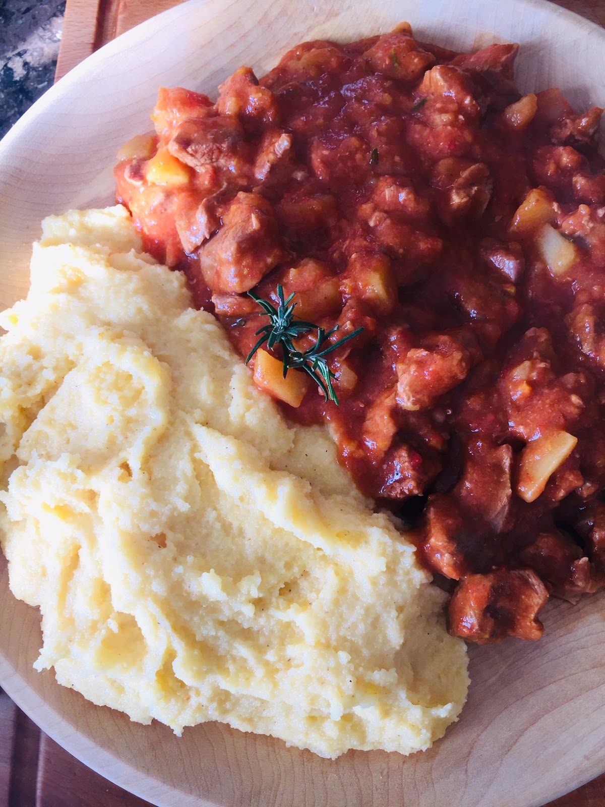 Servire accompagnato ad esempio da una polentina, oppure se non la amate, come mio marito, potete accompagnare ad un riso in cottura pilaf.