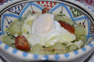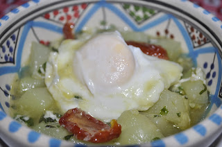 Aggiungete una manciata di prezzemolo tritato e alcuni pomodorini secchi, sale e pepe nero. Fate cuocere con il coperchio dopo aver aggiunto un bicchiere d’acqua. Dopo una decina di minuti mettete nel tegame le uova (uno per commensale) senza mescolare più fino a quando si saranno leggermente rapprese. Con un cucchiaio, delicatamente, servite la zucca spinosa con l’uovo al centro.
