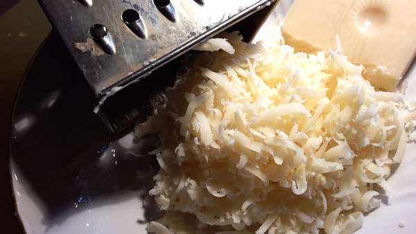 Grattugiare l’emmetal con l’attrezzo quadrangolare come appare in foto..