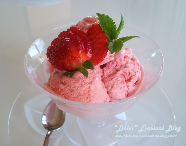 Girando per il web, mi sono imbattuta in questa ricetta dove sono utilizzati gli albumi e, siccome ne avevo alcuni in frigo da un paio di giorni che non sapevo come smaltire, me la sono copiata. In realtà trattasi di una ricetta per il Bimby, che io non possiedo, perciò l’ho riadattata per il Kenwood, ottenendo un buon risultato. Si tratta di un dessert semplice, con pochissimi ingredienti, veloce e genuino, oltre che buono. L’importante è che le fragole siano belle saporite, gustose e molto fredde. Non contiene grassi…solo zucchero, molto somigliante a un gelato se, come consiglio, viene fatto raffreddare bene in freezer. Il bello però, è che rimane sempre soffice e arioso e, anche se molto freddo, non congela e non si ammassa.