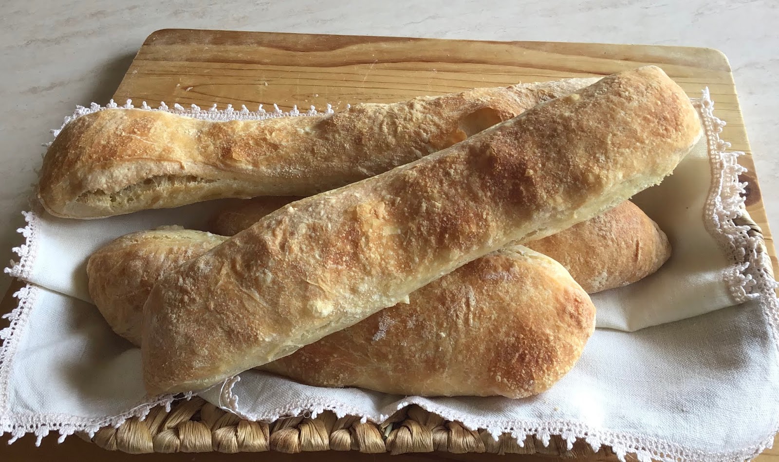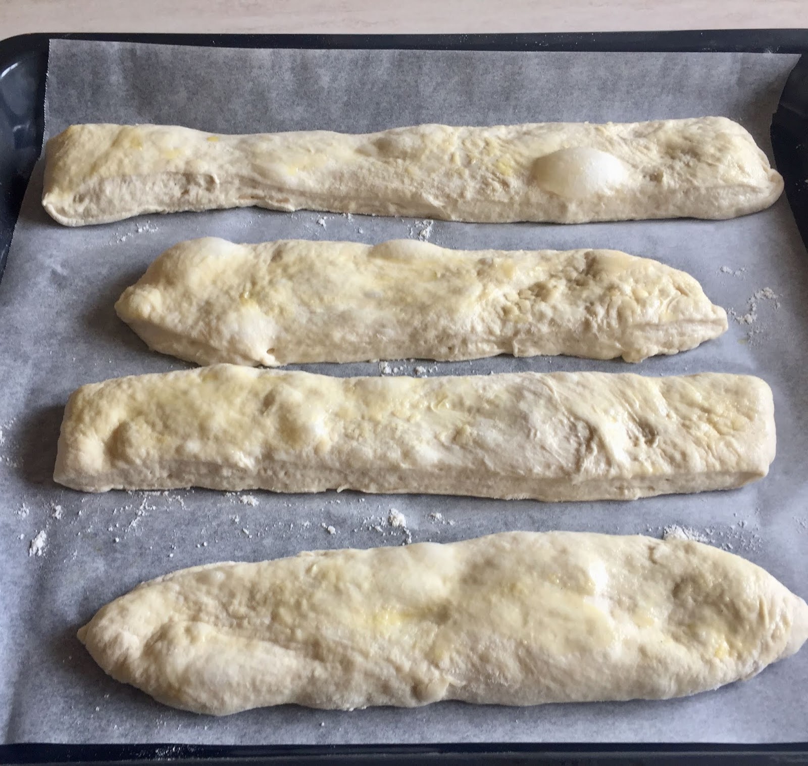 Una ricetta semplice che non necessita di attenzioni particolari: io ho impastato alle 20,00, ho ripreso l’impasto alle 9,00 e l’ho rimesso a lievitate alle 9,30. Dopo due ore ho dato le forme e alle 11,40 le ho infornate. Alle 12,00 le stecche erano pronte da gustare!