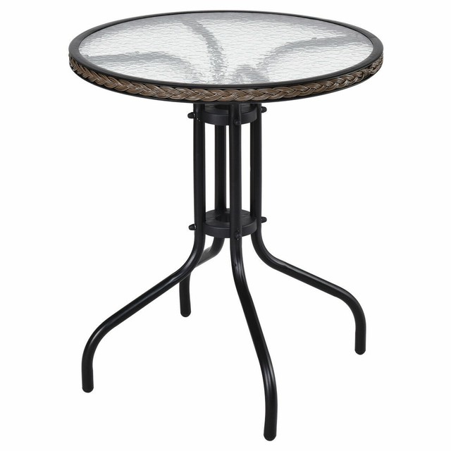 24 Patio Furniture Glass Top Patio Round Table Steel Frame Dining Table