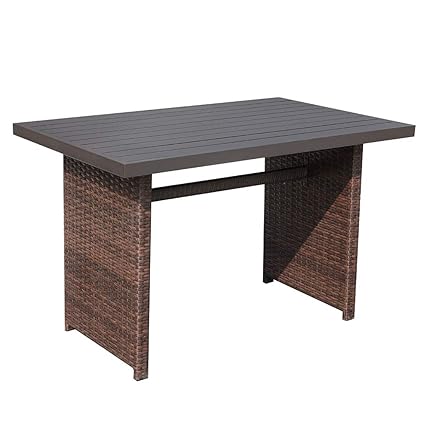 Patiorama Outdoor Dining Table Brown Wicker Rectangular Coffee Table With Aluminum Table Top Steel Frame