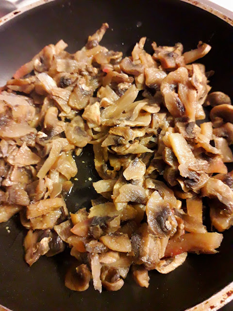 versare i funghi,salare,pepare e cuocere fino a far asciugare il liquido dei funghi,formare