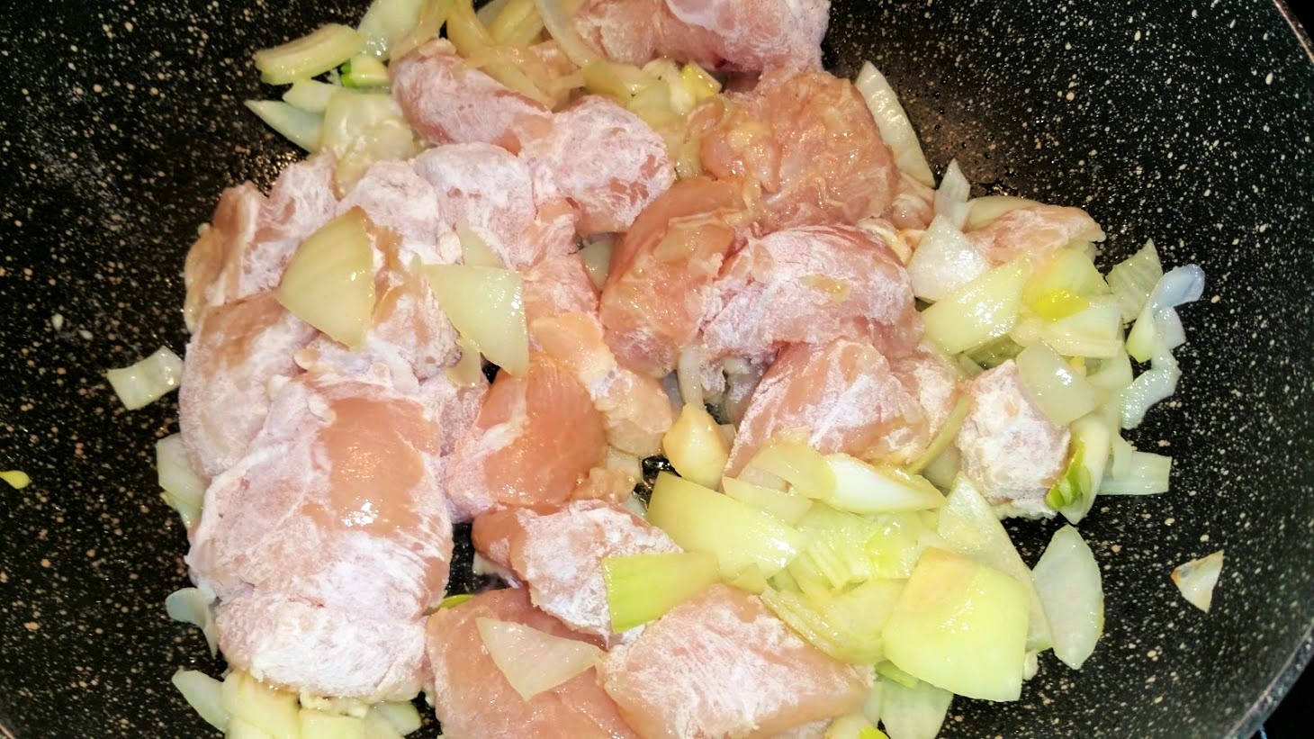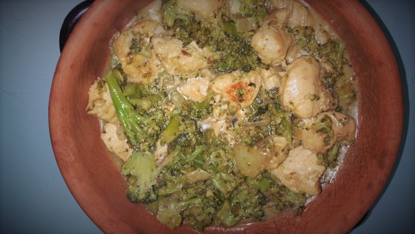 Soffriggere la cipolla tritata nell’olio e rosolarvi il pollo, bagnare col vino bianco, quando sarà evaporato salare e insaporire con il peperoncino e il cumino, quindi aggiungere i broccoli, poi il brodo. Quando il brodo sarà quasi del tutto evaoporato aggiungere lo yougurt e il curry, mescolare ancora per qualche minuto sul fuoco, e poi spegnere e servire ben caldo.