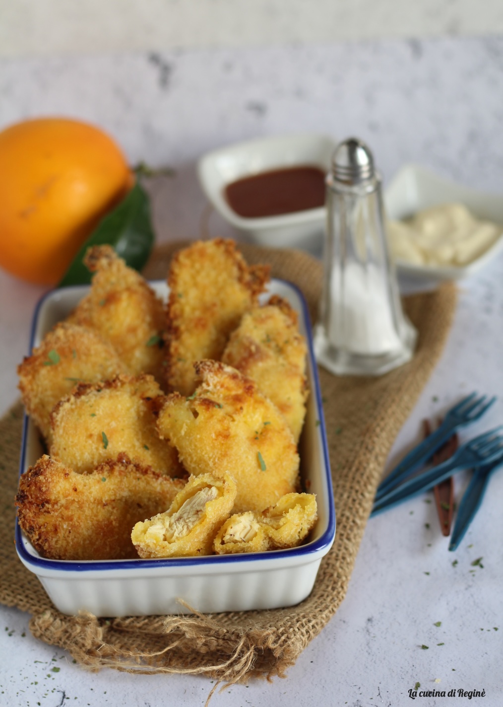 In questa preparazione, il petto di pollo viene prima tagliato a fette spesse e poi a straccetti, quindi marinato nel succo e nelle bucce d’arancia, un passaggio fondamentale che dona una nota agrumata fresca e profumata, davvero particolare. Successivamente, gli straccetti vengono passati nella classica panatura con farina, uovo e panko, che garantisce una croccantezza irresistibile.