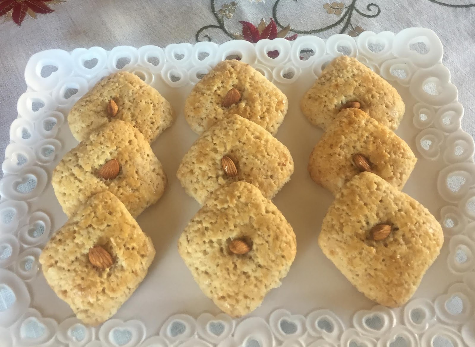 In una ciotola versate la farina e lo zucchero, i cubetti dell’arancia canditi, la granella di mandorle, le uova, l’ammoniaca, il burro morbido e impastate. Se l’impasto si dovesse rivelare duro aggiungete del latte oppure dell’anice. Avvolgetelo nella pellicola trasparente e fatelo riposare in frigo per un’ora. Stendete poi l’impasto con il mattarello allo spessore di un centimetro e tagliatelo a rombi che sistemereta su una teglia rivestita con carta forno.