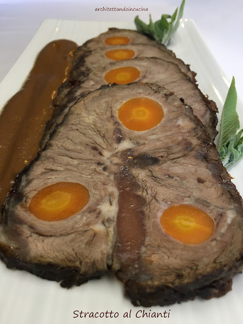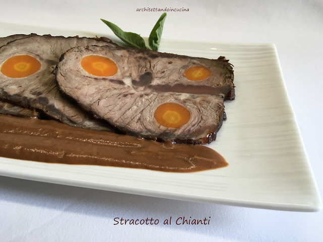 In questo blog, lo Stracotto c’è già in 2 versioni: lo Stracotto alla fiorentina, con la carne tagliata a cubetti tipo spezzatino e lo Stracotto al Chianti, nella versione della famiglia di Alba steccato con la carota. Questa terza versione è un po’ il mix tra le 2, che mantiene la steccatura con la carota che i miei figli amano tanto, ma senza marinatura nel vino. Il risultato è davvero buonissimo.