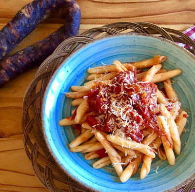 Oltre la salsiccia piccante per preparare il sugo abbiamo bisogno della cipolla di Tropea e della ‘nduja di Spilinga, ingredienti tipici della mia meravigliosa regione.