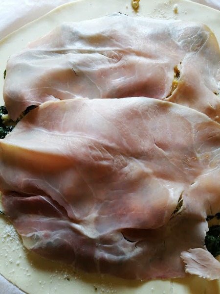 Disporre le fette di prosciutto.