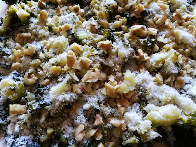 Unire le noci tritate e aggiungere il tutto sulla base di spinaci.