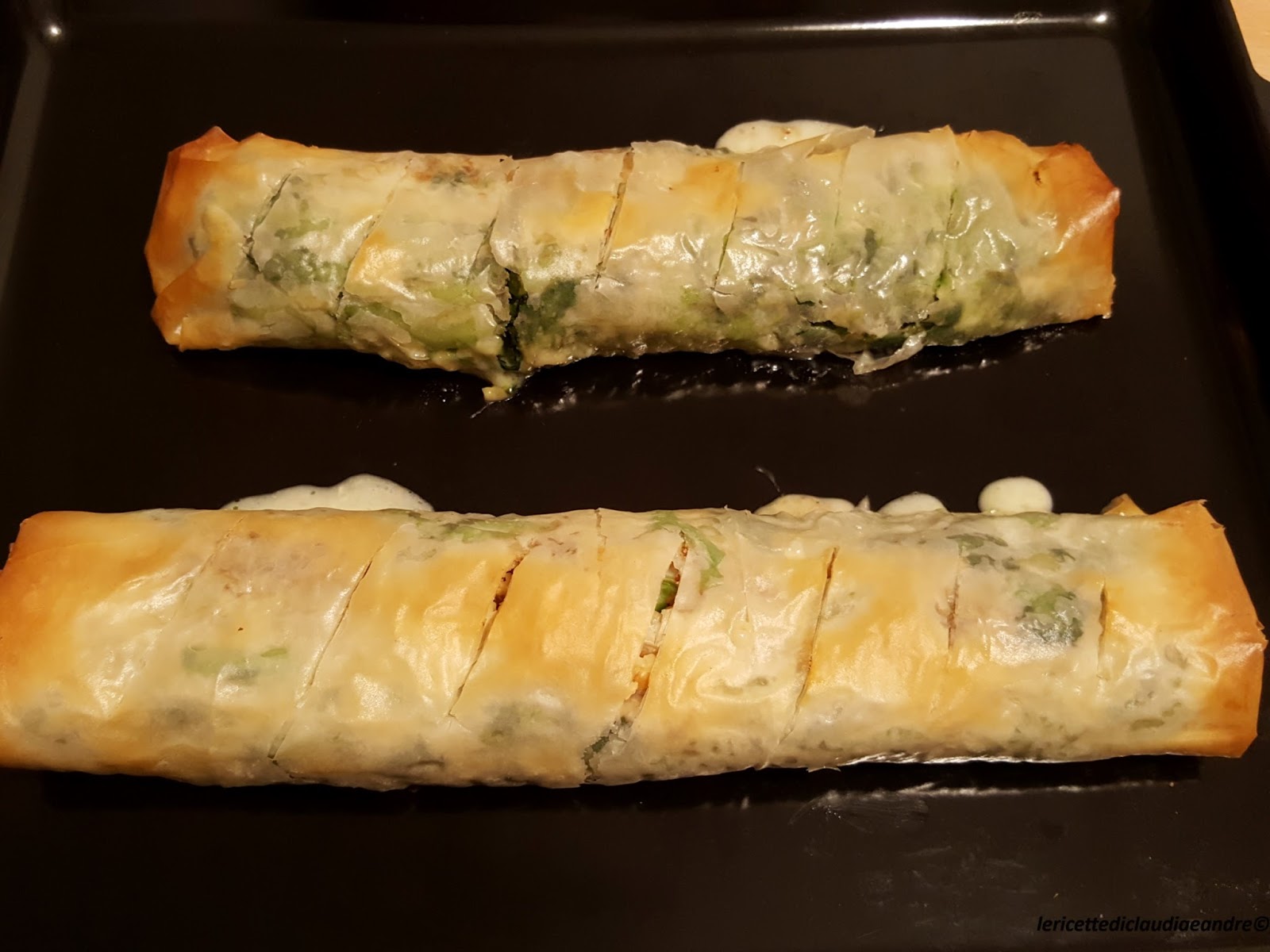 - 5 fogli grandi di pasta fillo (ci volevano 4 però mi rimaneva un foglio e ho messo 3 fogli a un rotolo, ma va benissimo)