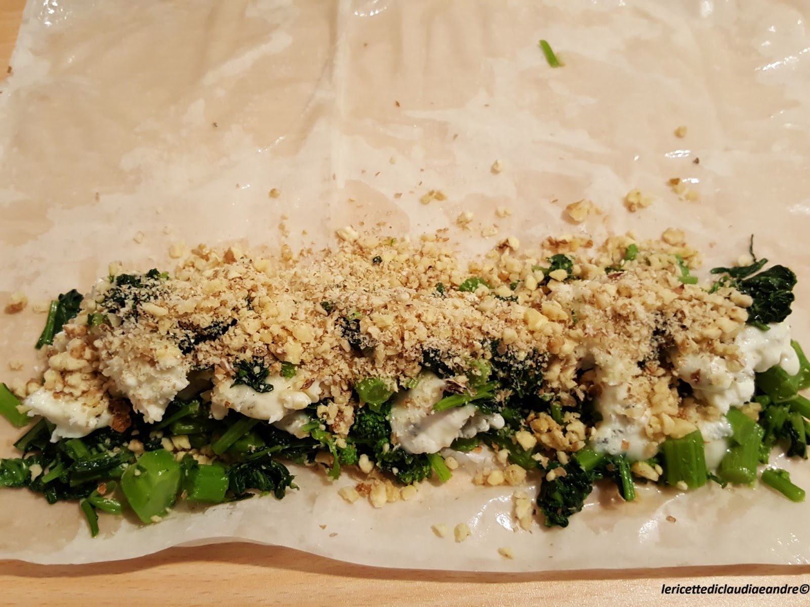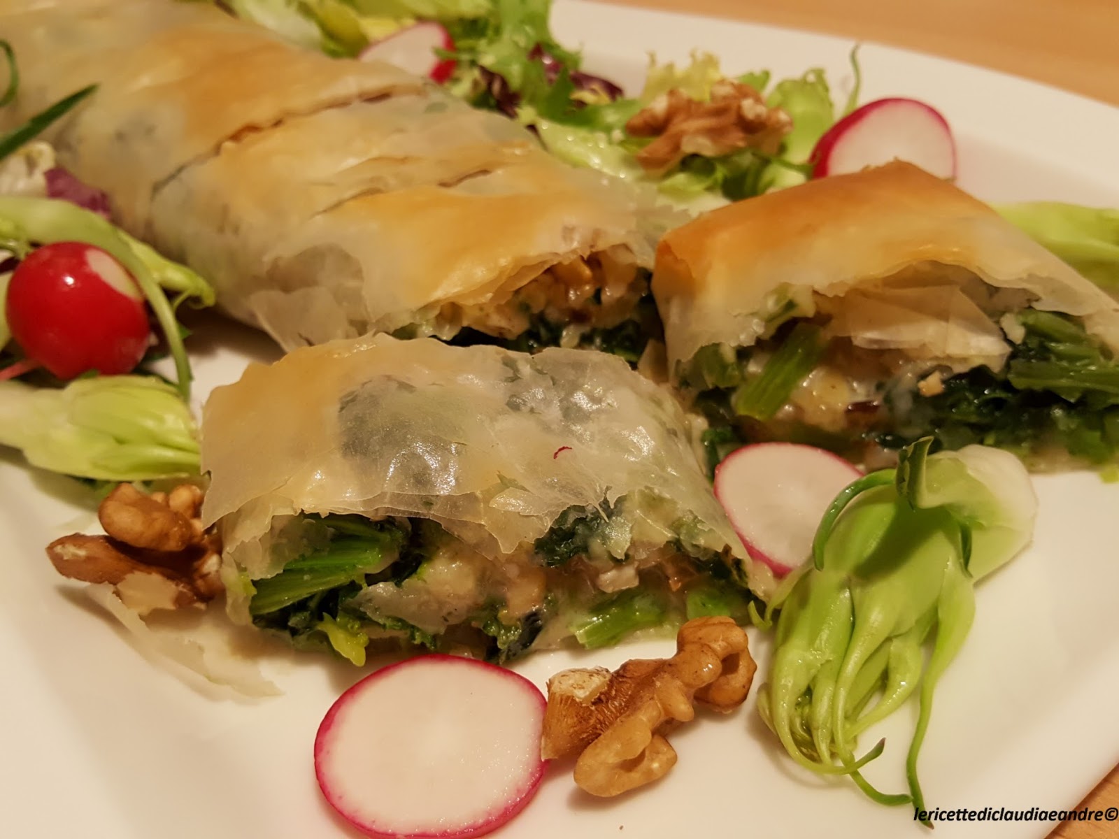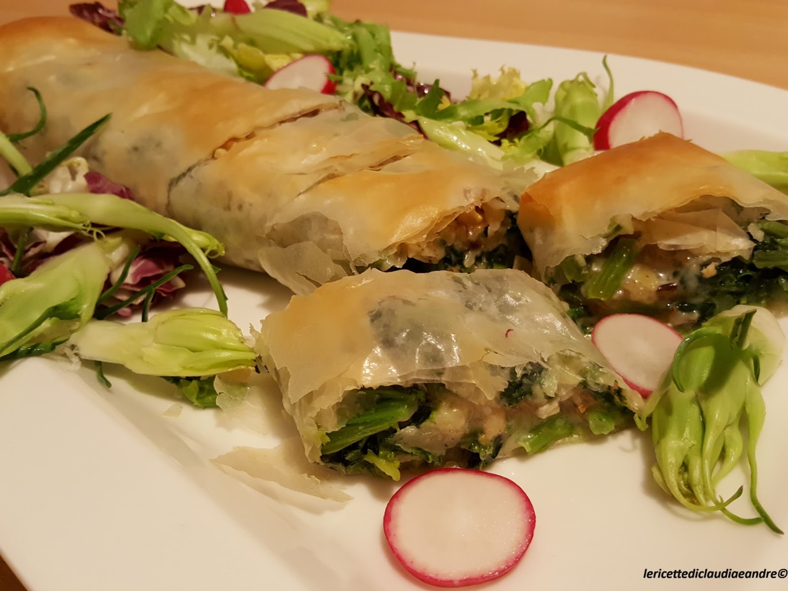 Strudel di pasta fillo con cime di rapa, gorgonzola e noci