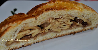 Ingredienti per il ripieno: 4 mele, 1 limone, 80 g di zucchero, cannella, uva sultanina, pinoli o qualche gheriglio di noci.