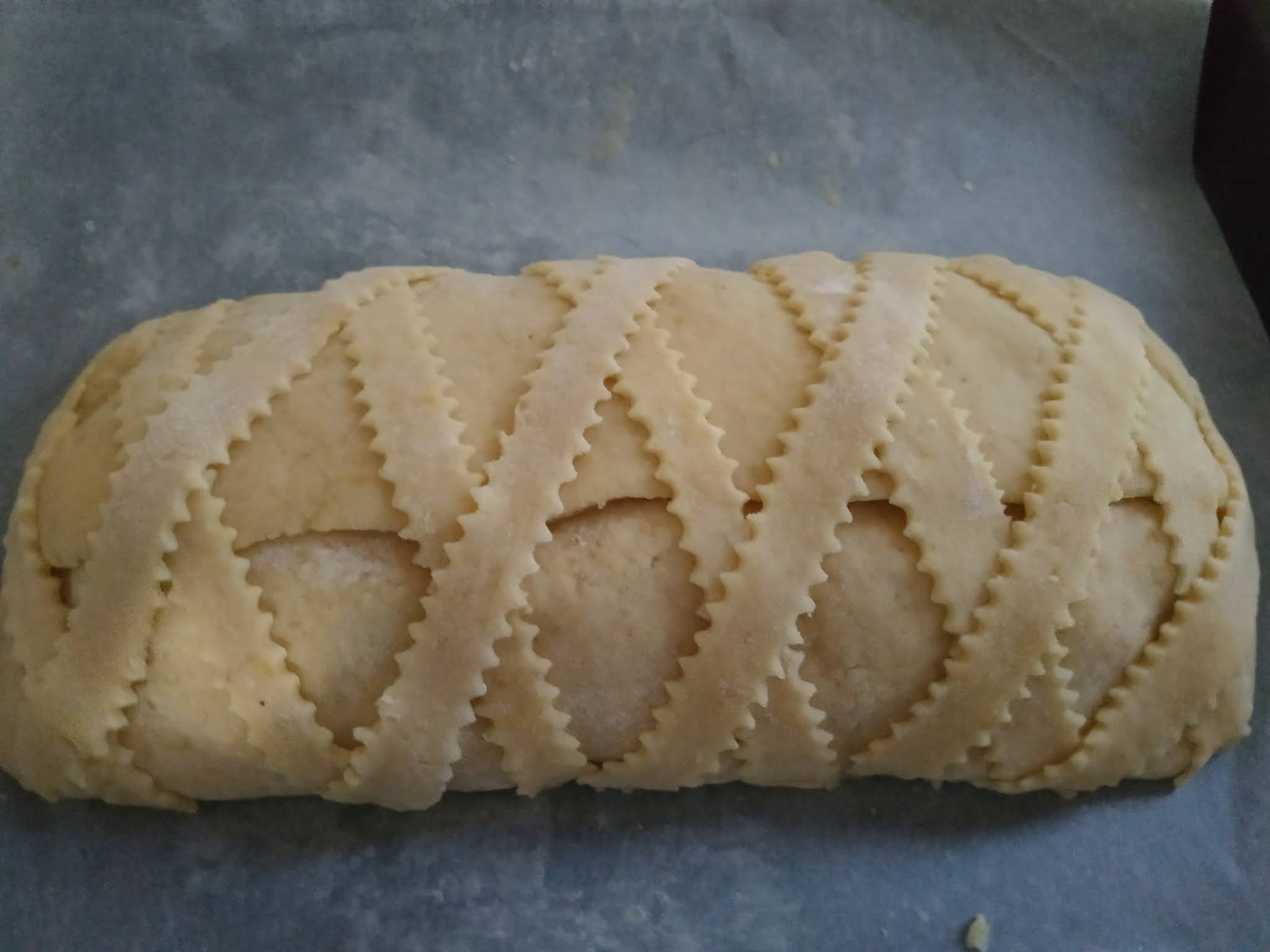 Richiudete lo strudel e decorate la superficie con i ritagli della pasta avanzata.