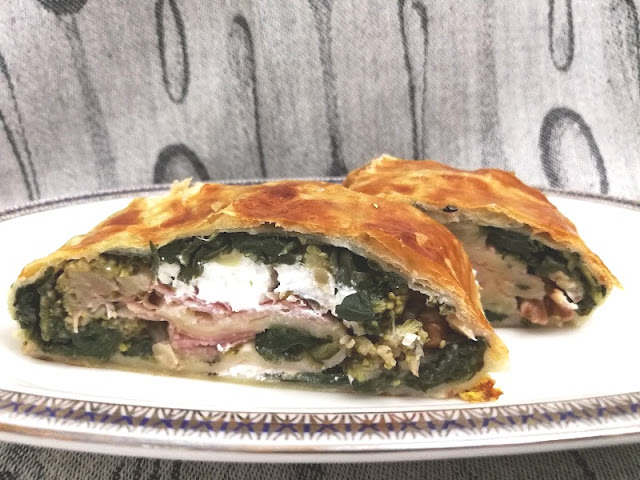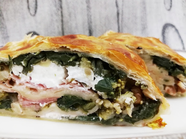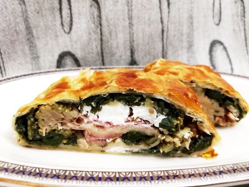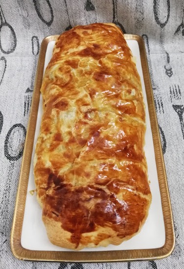 Rimboccare i lembi, arrotolare e pennellare con il tuorlo d’uovo diluito con poco latte..